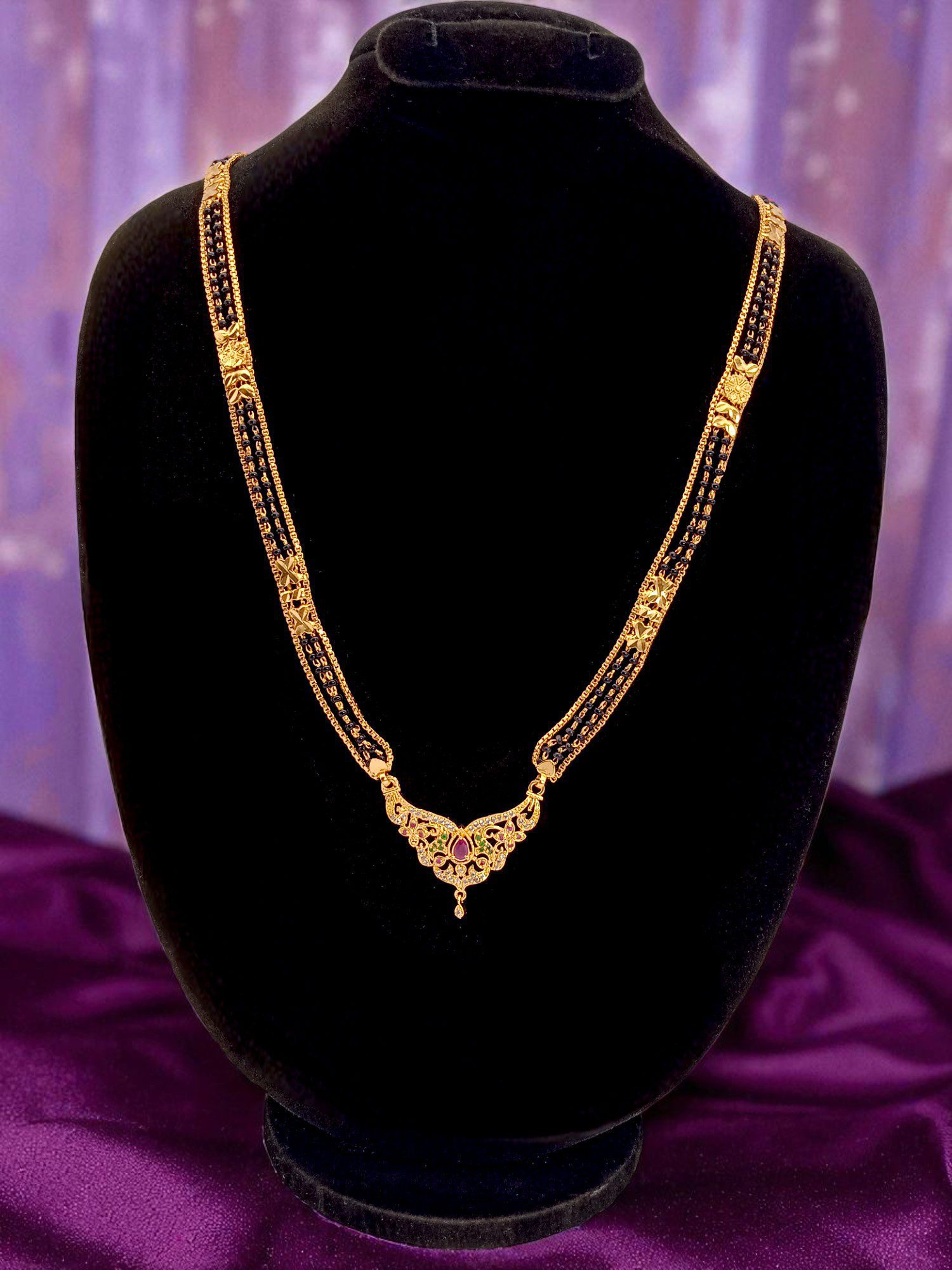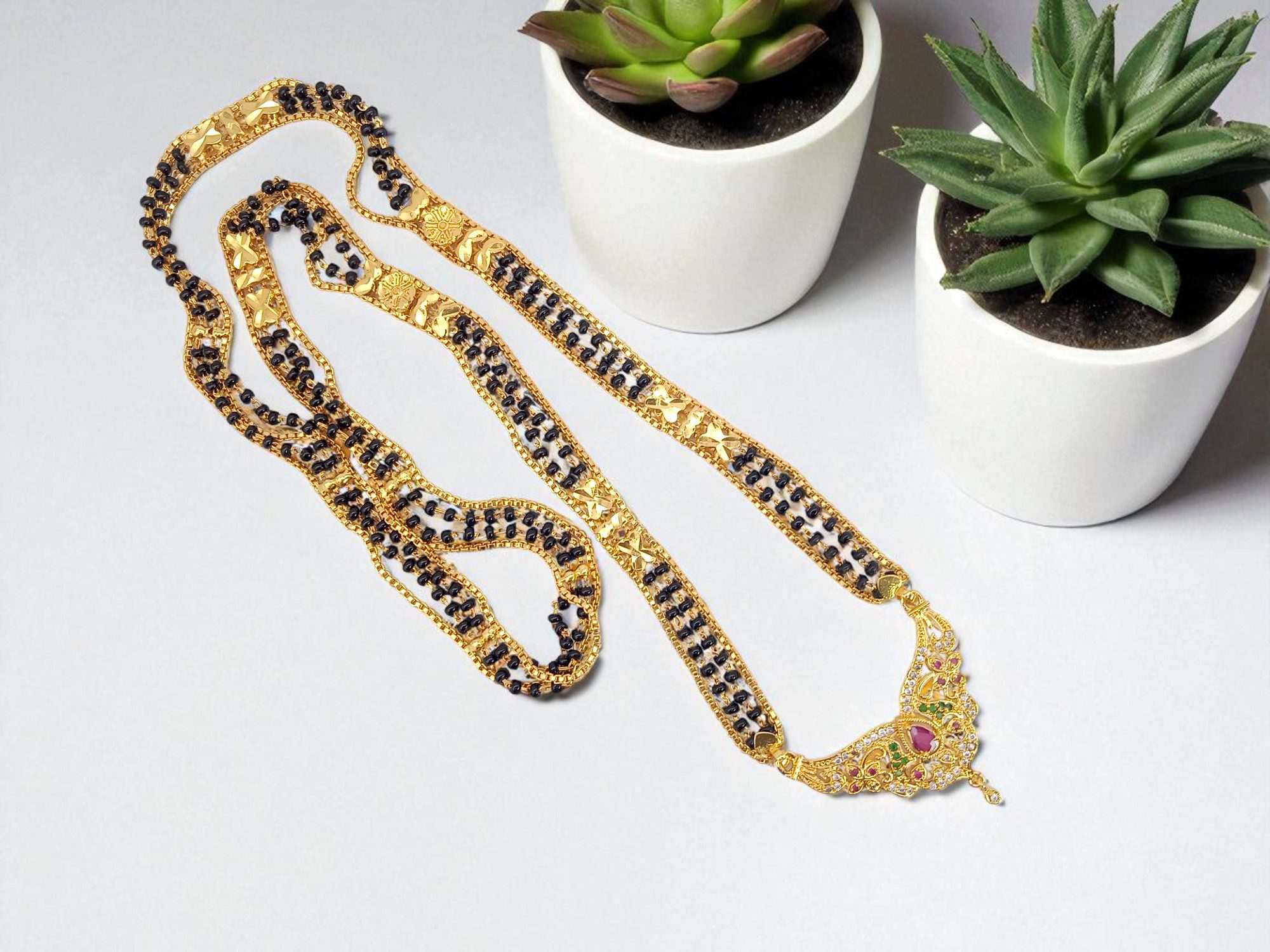 1 Gram Gold Plated Black Beaded Long Dollar Chain