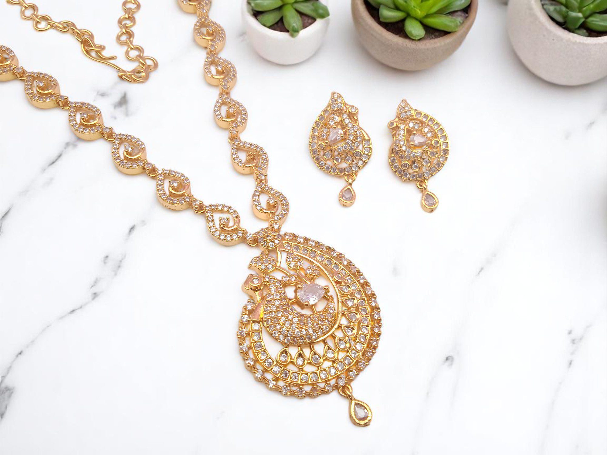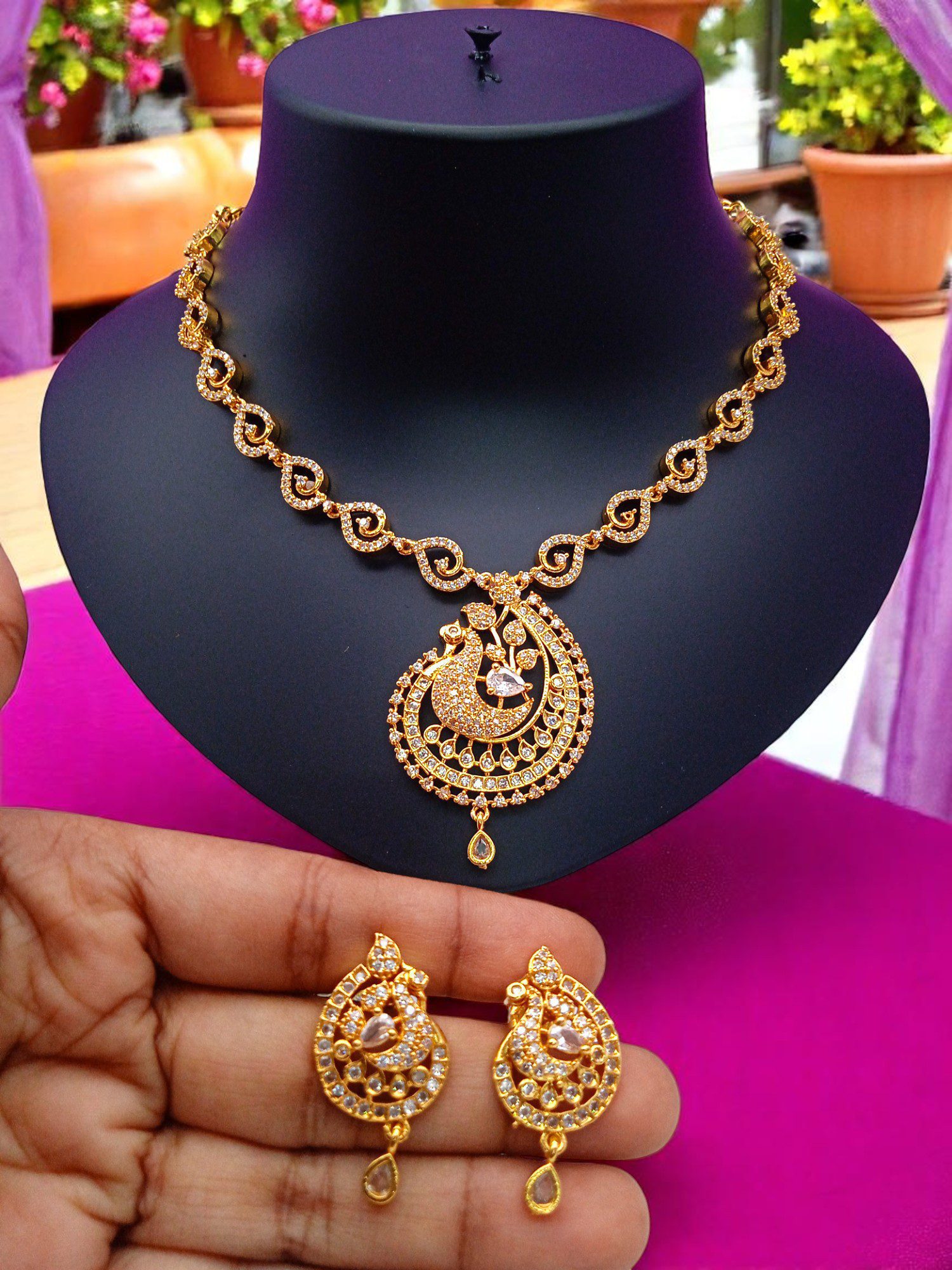 1 Gram Gold Plated AD Jewellery Set/Necklace Set